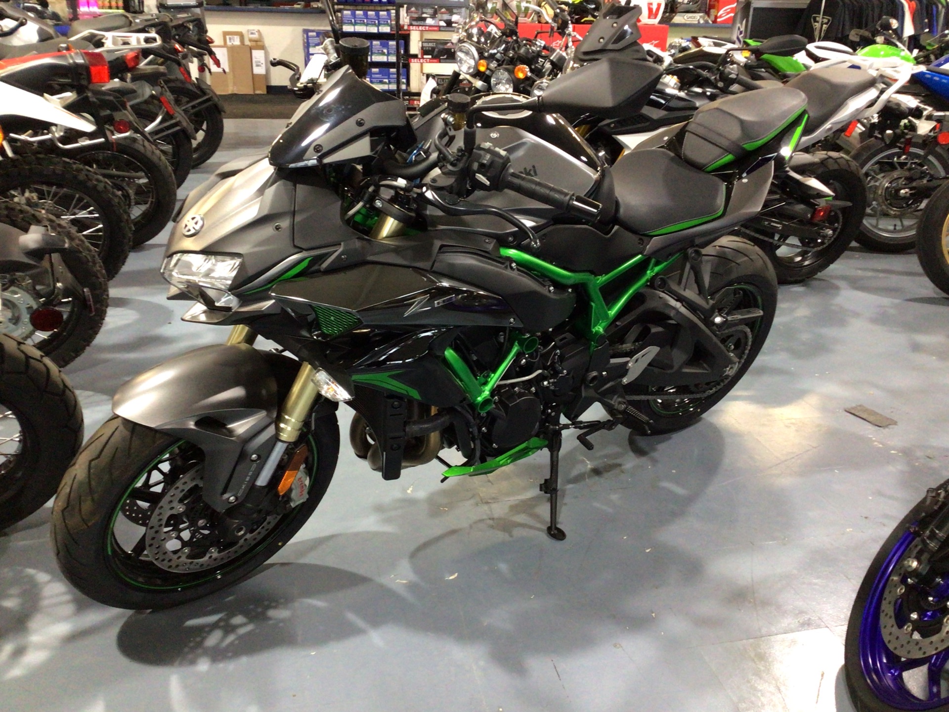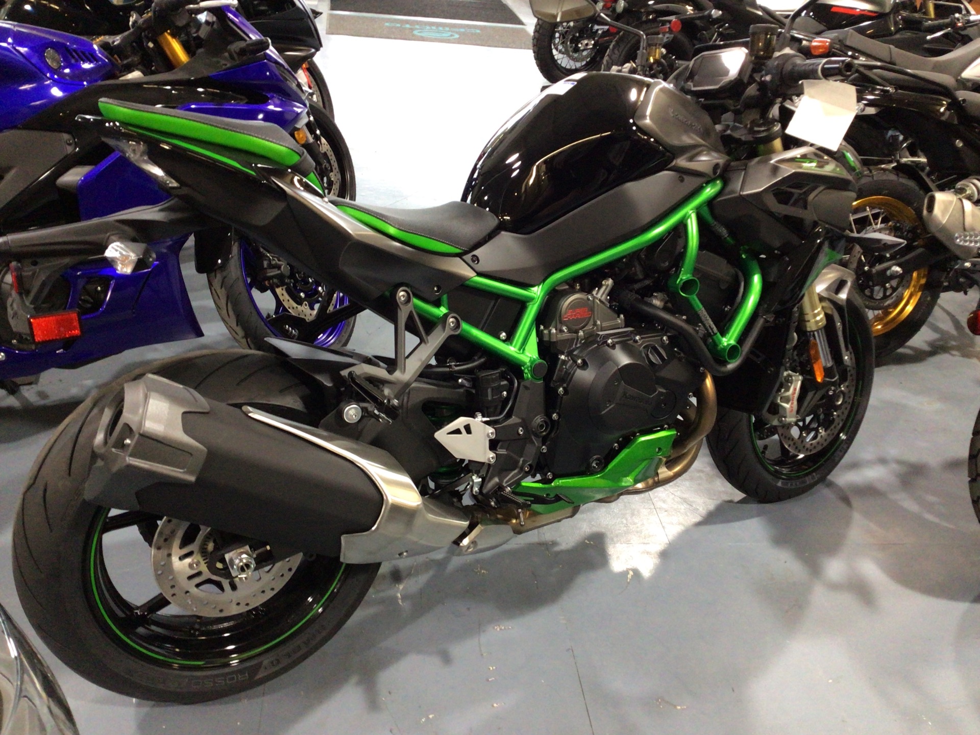 Kawasaki’s legacy of creating motorcycles that have unrivaled performance, excitement, and Sugomi™ styling continues with a flagship model of the Kawasaki Z line of naked motorcycles, the Z H2 supercharged hypernaked. The next-level Z H2 SE hypernaked combines the balanced supercharged engine with premium components including Kawasaki Electronic Control Suspension (KECS) with Showa Skyhook EERA Technology and Brembo Stylema® calipers.